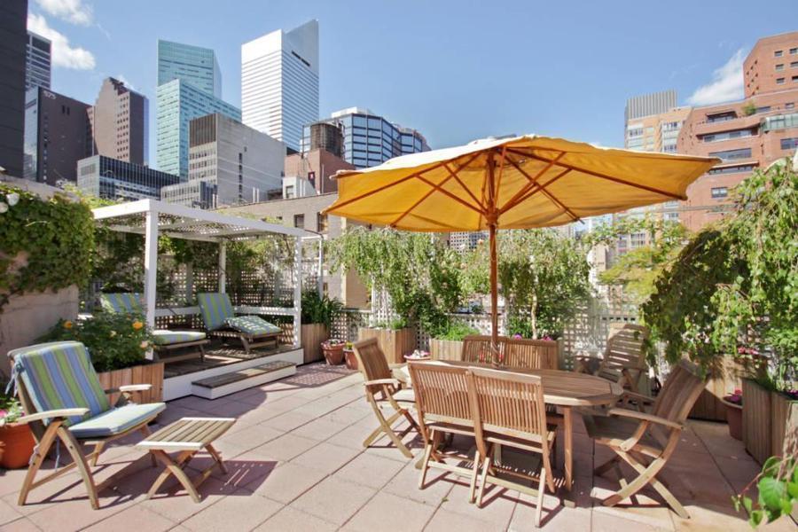 A rare-to-find duplex in the heart of Turtle Bay. Ile Saint Louis is a small boutique building located on a very quiet stretch of 50th Street. Its 1980s design features unique bow-windows and terraces on each floor. This combination apartment boasts three bedrooms and three bathrooms. It’s functional layout allows for the unit to be used as a very practical home office, with a separate entrance and reception area. It could also be split into two completely separate dwellings – an ideal solution for those parents that want to keep their children close to home, yet allowing them a certain independence.The lower level offers two separate entrances. One leads into the living room, with its majestic 20ft ceilings, veranda and terrace. The kitchen opens onto a counter making it a very enjoyable place for a quick meal or drinks with guests. The ample dining area, instead, can be used for formal receptions. The adjacent room, currently used as a tv den, can be converted into a comfortable bedroom with its private bathroom. The second entrance on this level opens onto an office space with a reception area, elegant veranda, full bathroom and kitchen.The upper level, with its own entrance, features a large corner bedroom equipped with a fireplace and an en-suite windowed bathroom. A spacious interior balcony overlooks the living area below. An elegant spiral staircase leads to the unit’s private rooftop, equipped with a gazebo and covered space for storage and pantry area. The versatile layout offered by this apartment combined with the building’s privacy make it a unique opportunity.