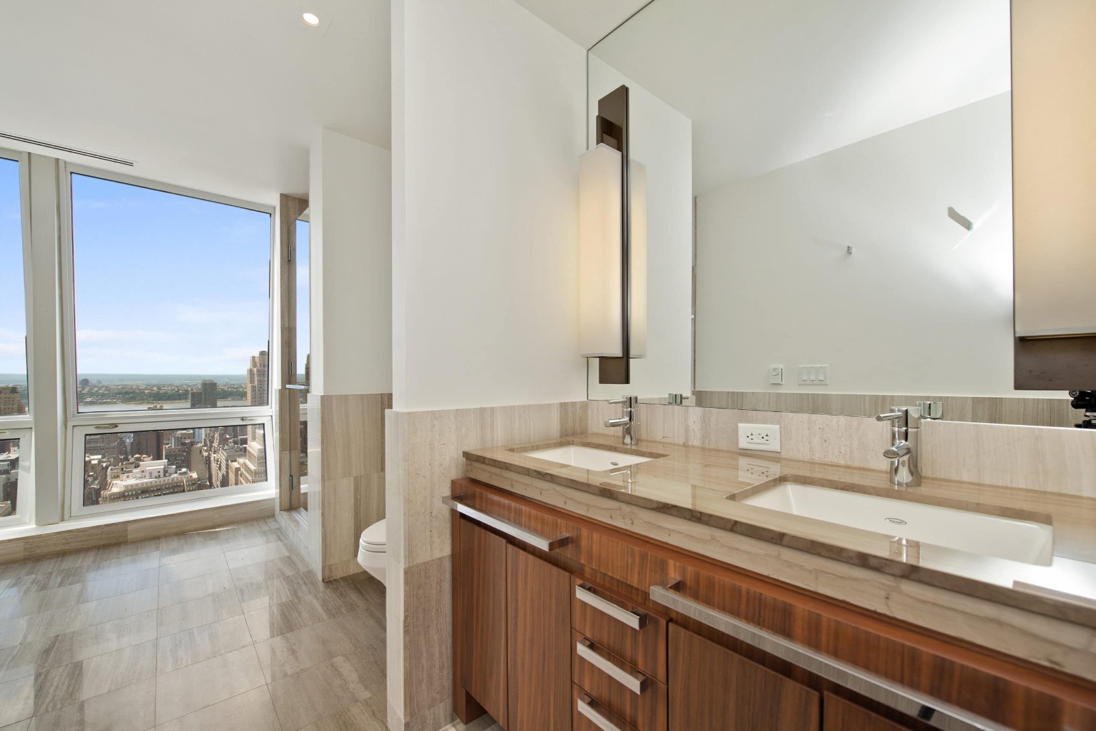 Stunning, Fifth Avenue high-floor condominium residence, located atop the five star Langham Place Hotel, with magnificent views of the city and Hudson river from floor-to-ceiling windows. Enjoy stunning sunsets from the 48th floor of this Bizzi & Partners development designed by Gwathmey Siegel.