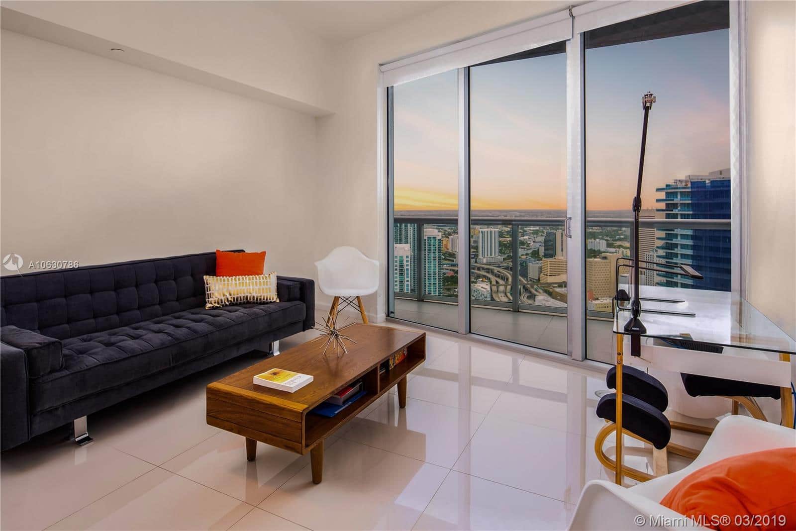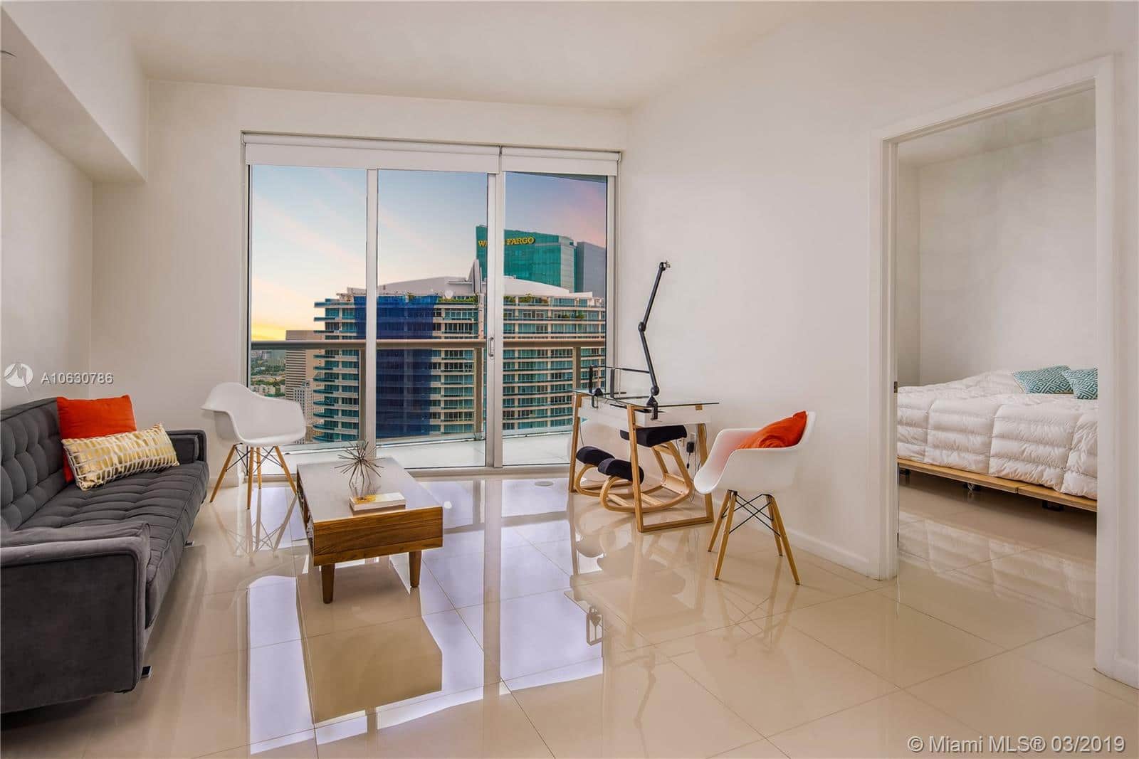 Come live in this impeccable 1 bedroom condo, towering on the 52d floor. Relax and unwind after a long day to the breathtaking skyline views on your oversized balcony, with panoramic views of Miami and the Miami River. Upon entry, the long foyer will lead you through a fully equipped gourmet kitchen and into your cozy living room.