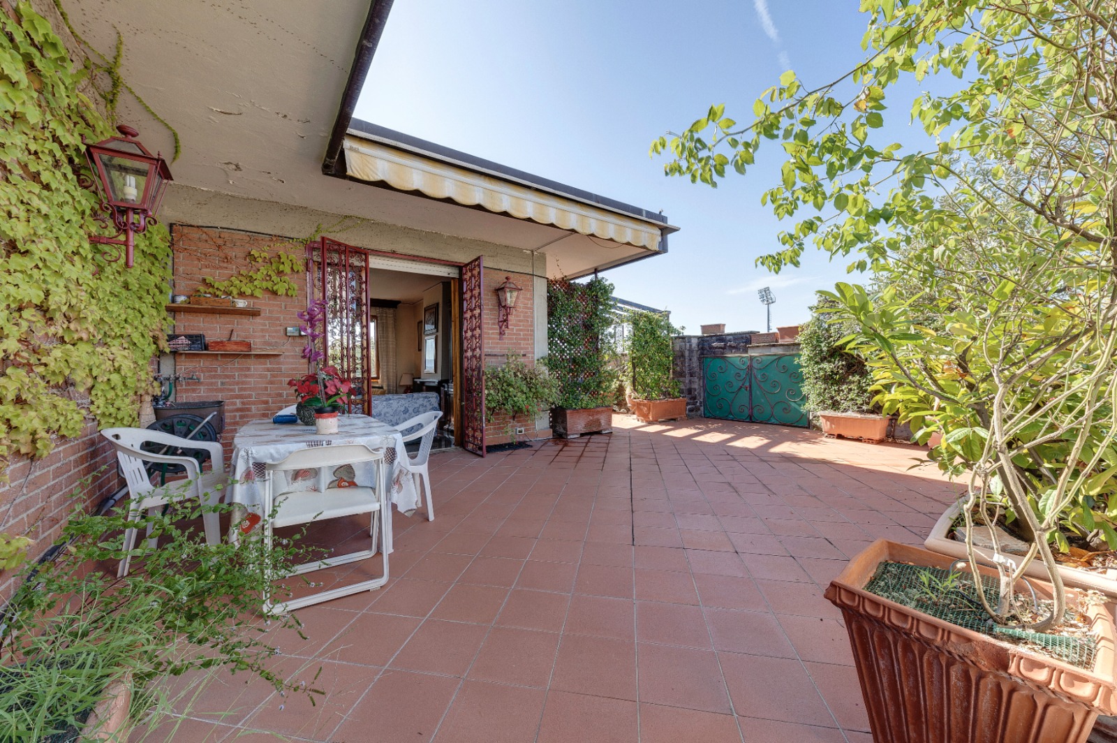 Completa la proprietà un garage di circa 20 mq. La terrazza ristrutturata presenta un locale chiuso a pavimento dove poter sistemare utensili da giardino, tavoli e sedie. La proprietà risulta molto luminosa e con affacci sul verde. La zona è ben servita da una serie di trasporti che conducono al centro storico della città, oltre ad essere ricca di servizi, negozi e supermercati.