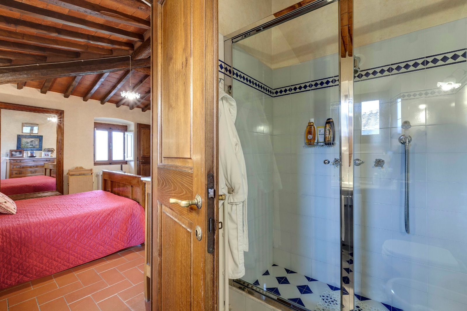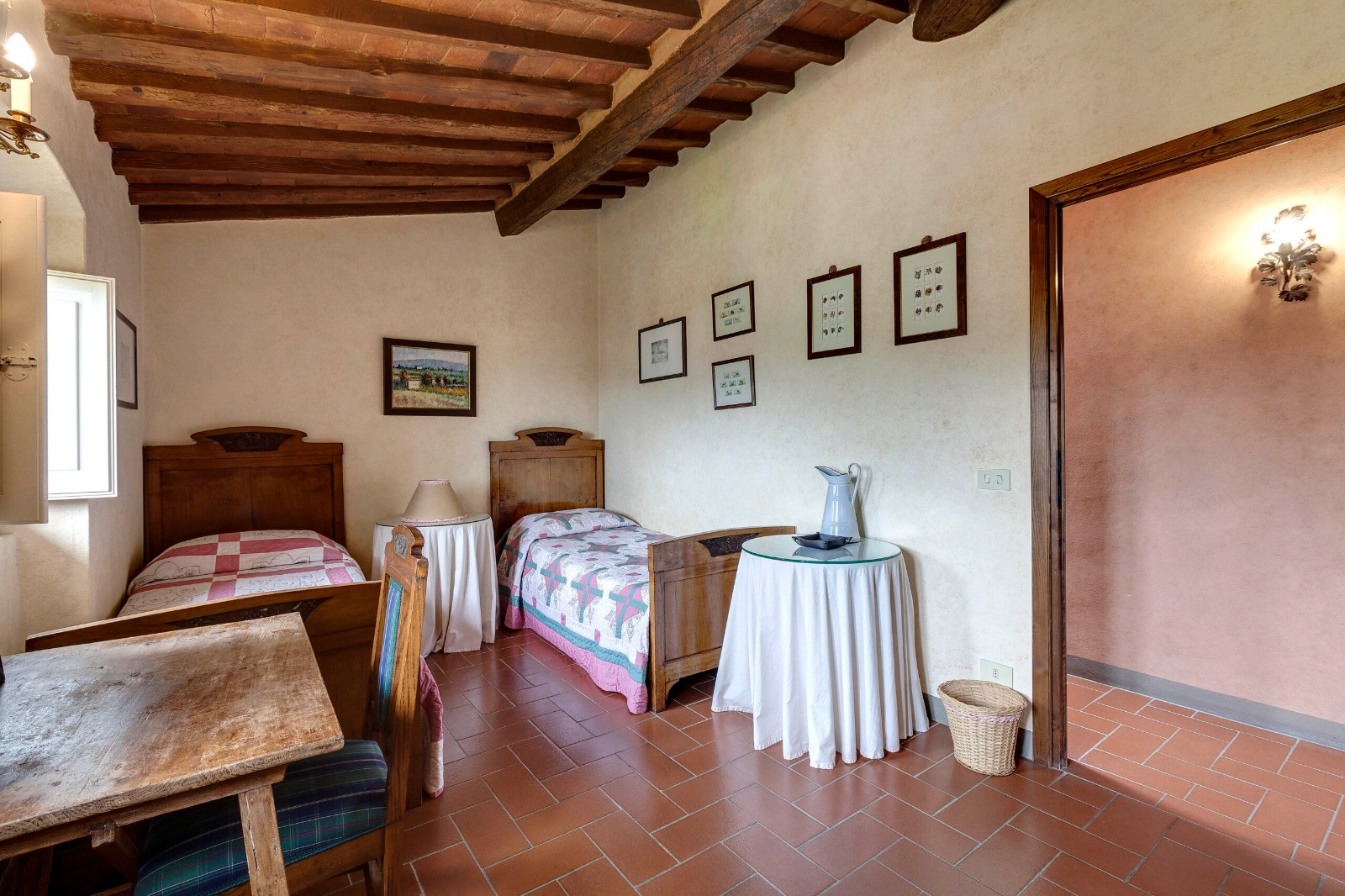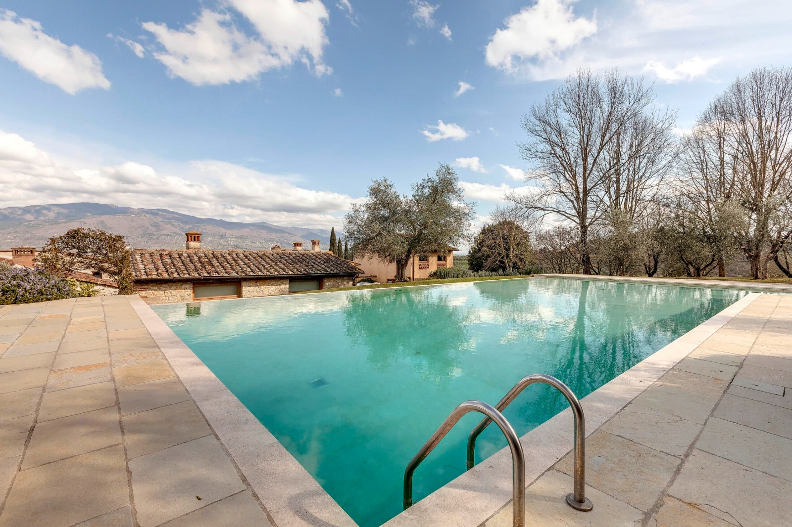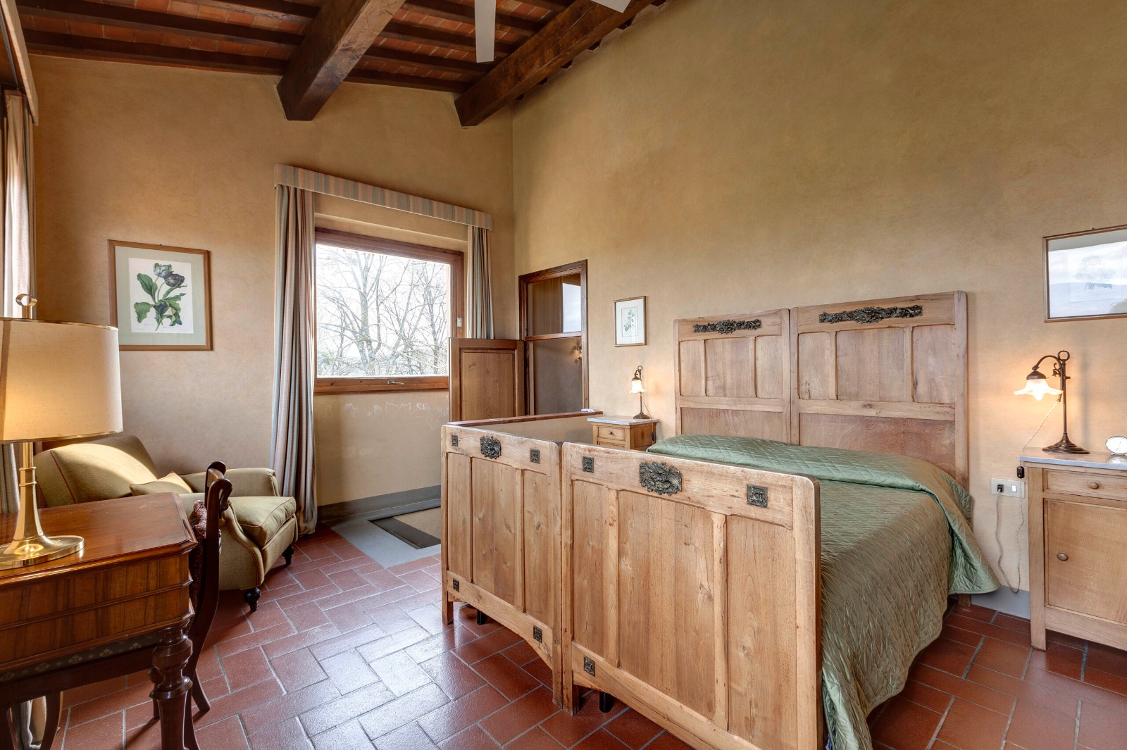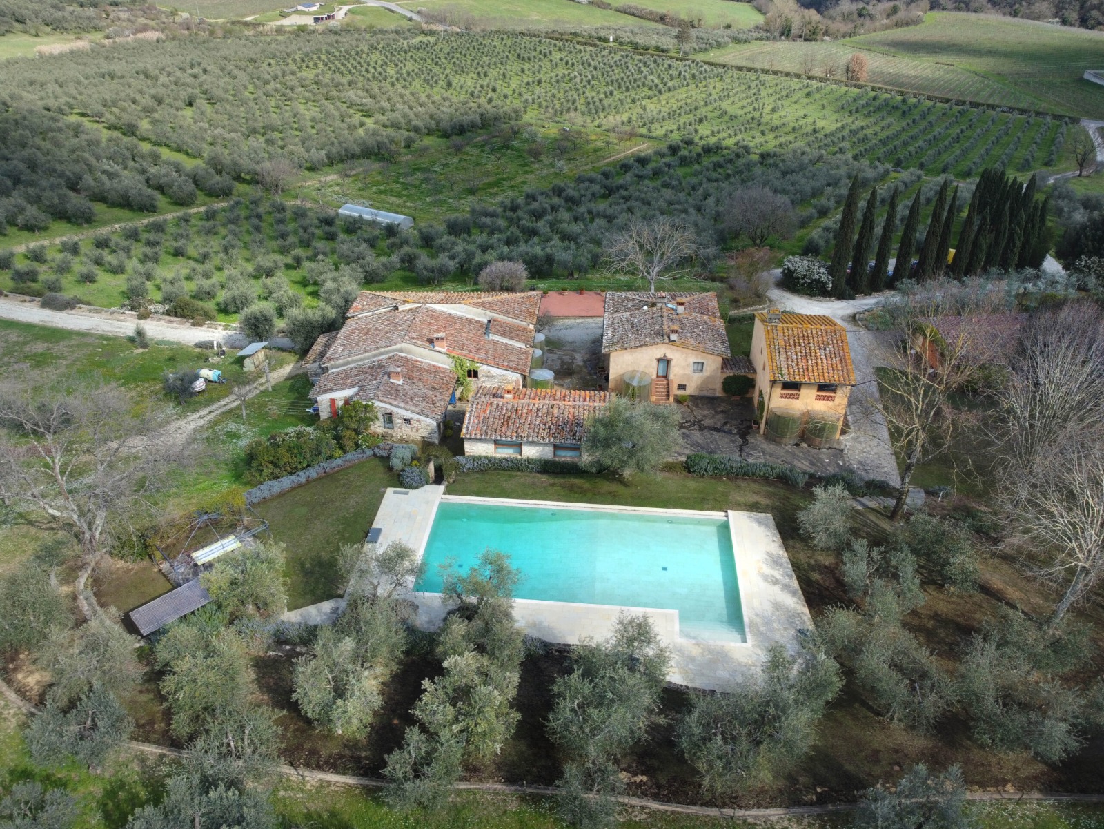 L’intera proprietà si trova in una posizione dominante da dove poter ammirare la splendida vallata e dispone di una piscina 20×9 situata nella parte più riservata dell’immobile. Dispone inoltre di un garage, un deposito attrezzi e di un appartamento per i casieri.