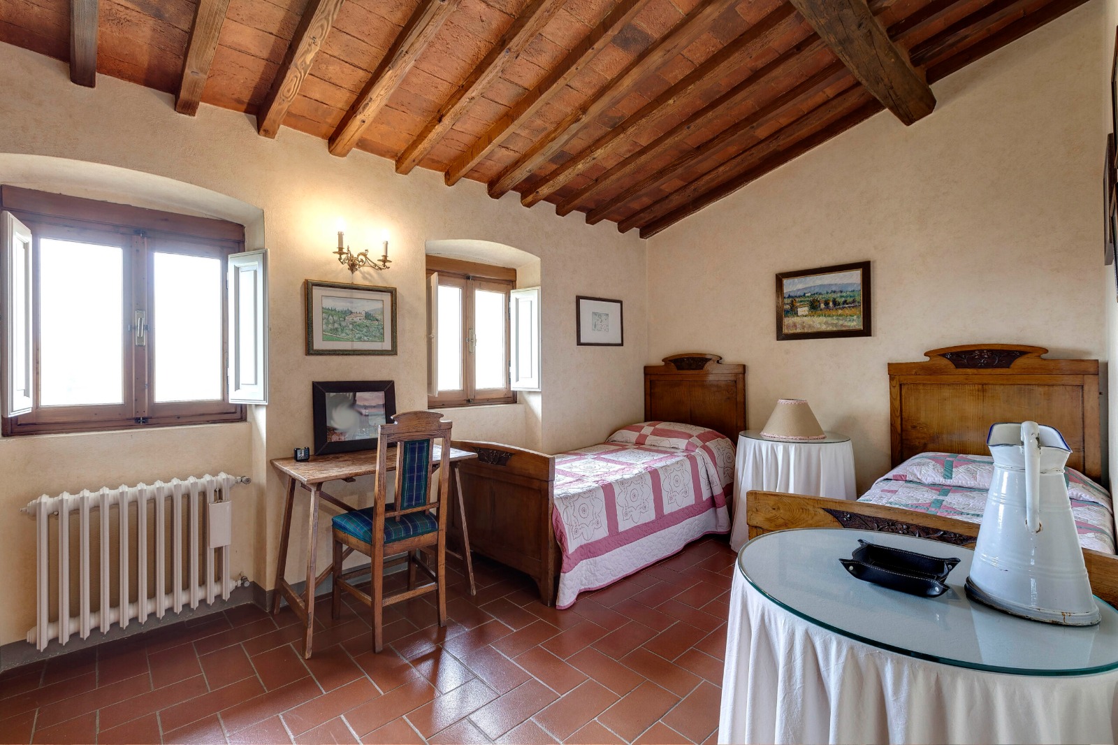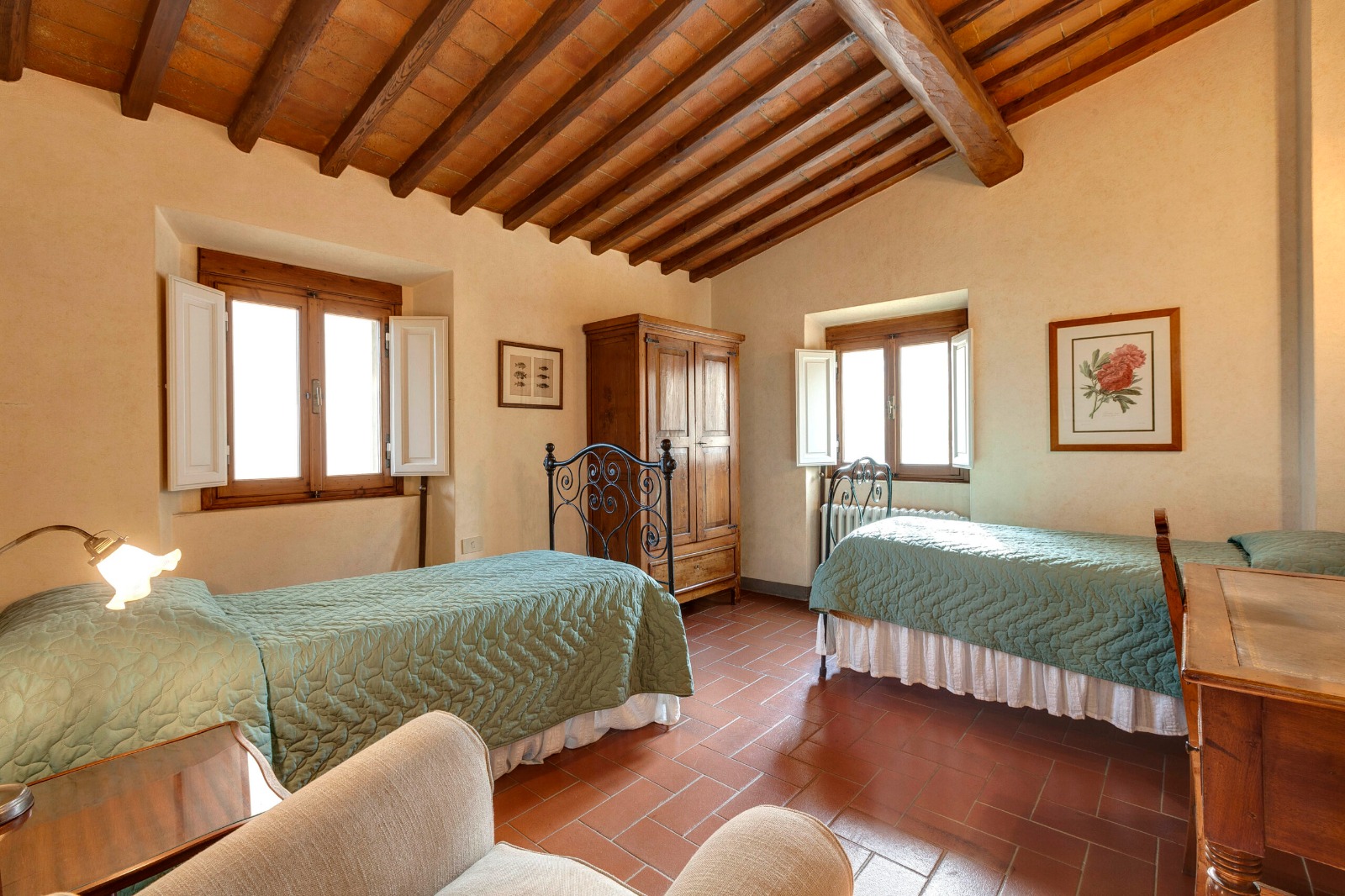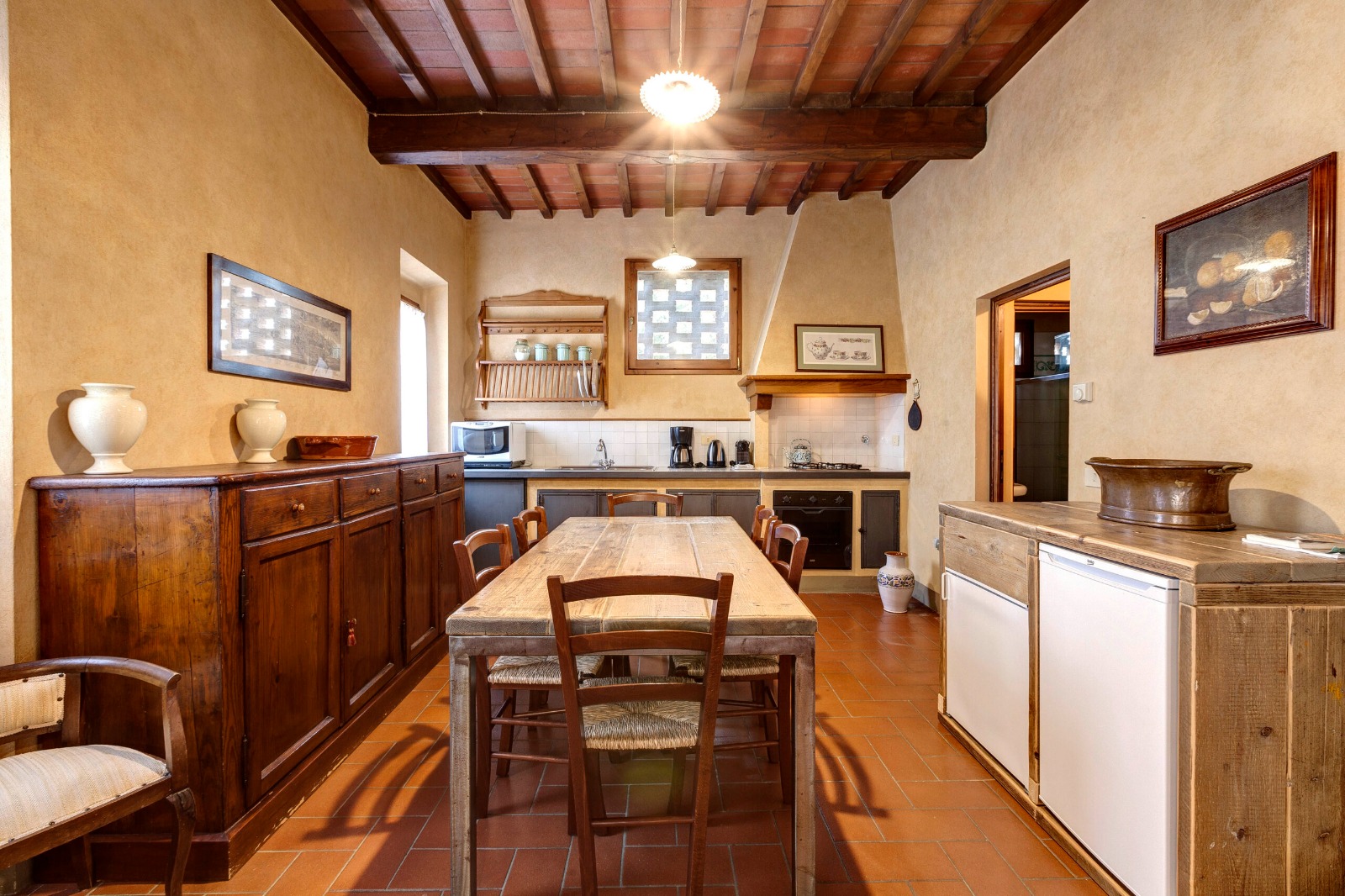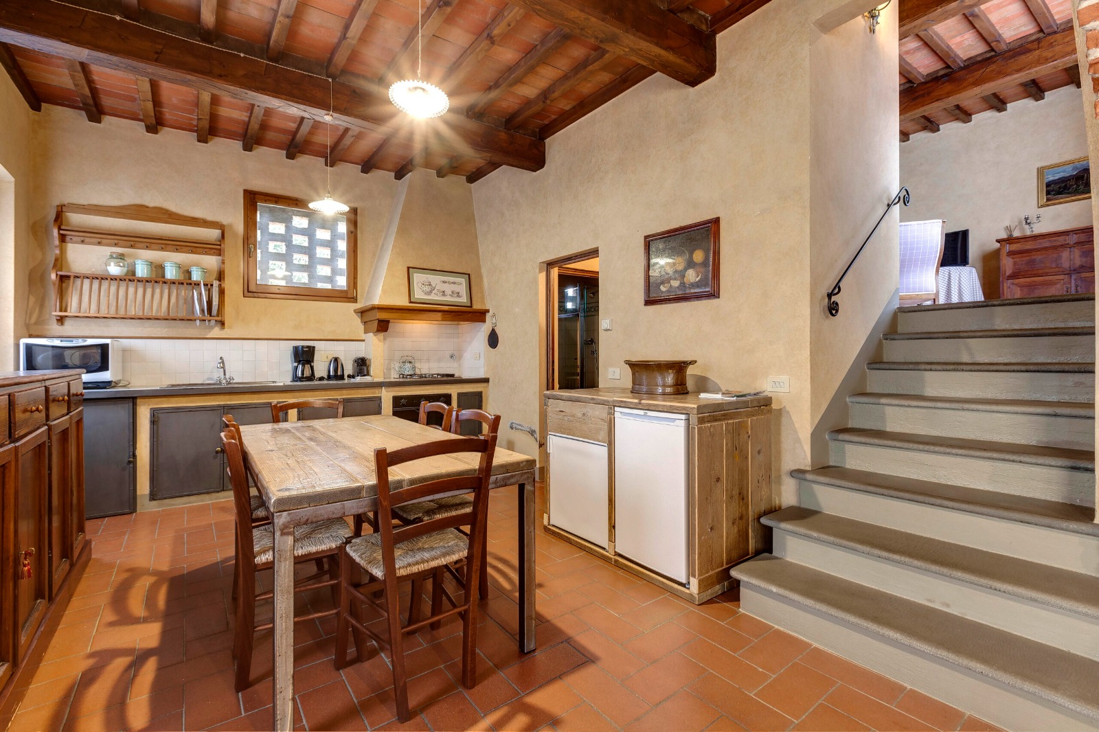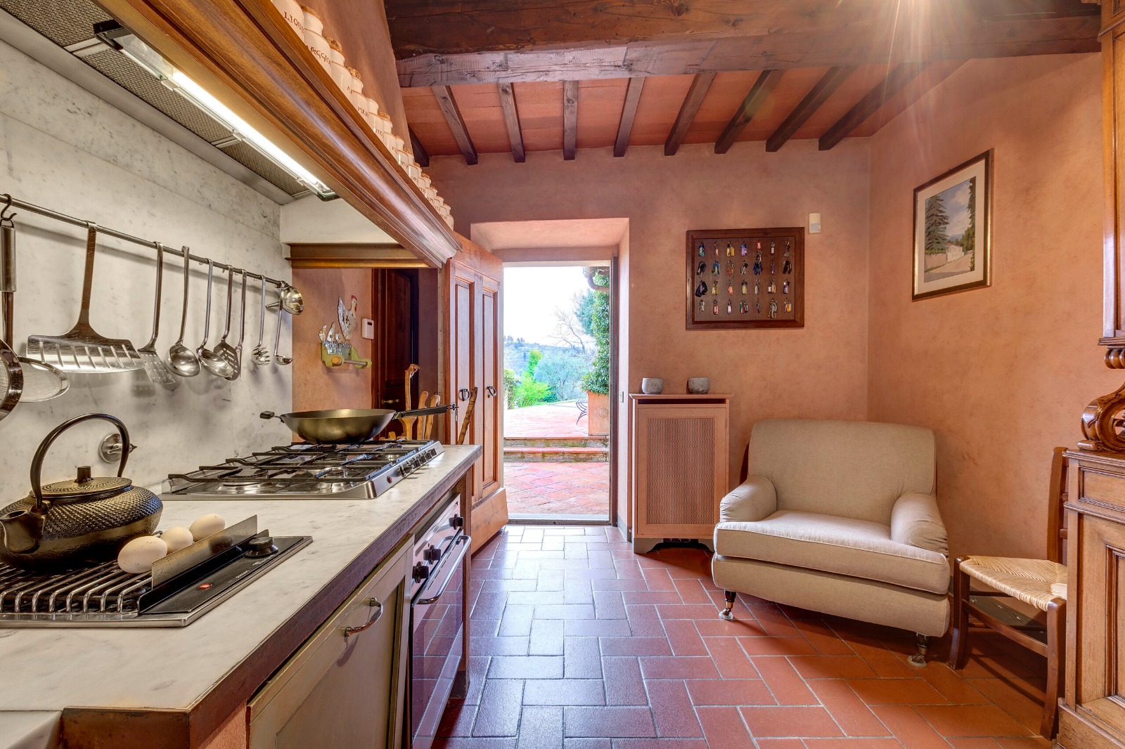 L’intera proprietà si trova in una posizione dominante da dove poter ammirare la splendida vallata e dispone di una piscina 20×9 situata nella parte più riservata dell’immobile. Dispone inoltre di un garage, un deposito attrezzi e di un appartamento per i casieri.