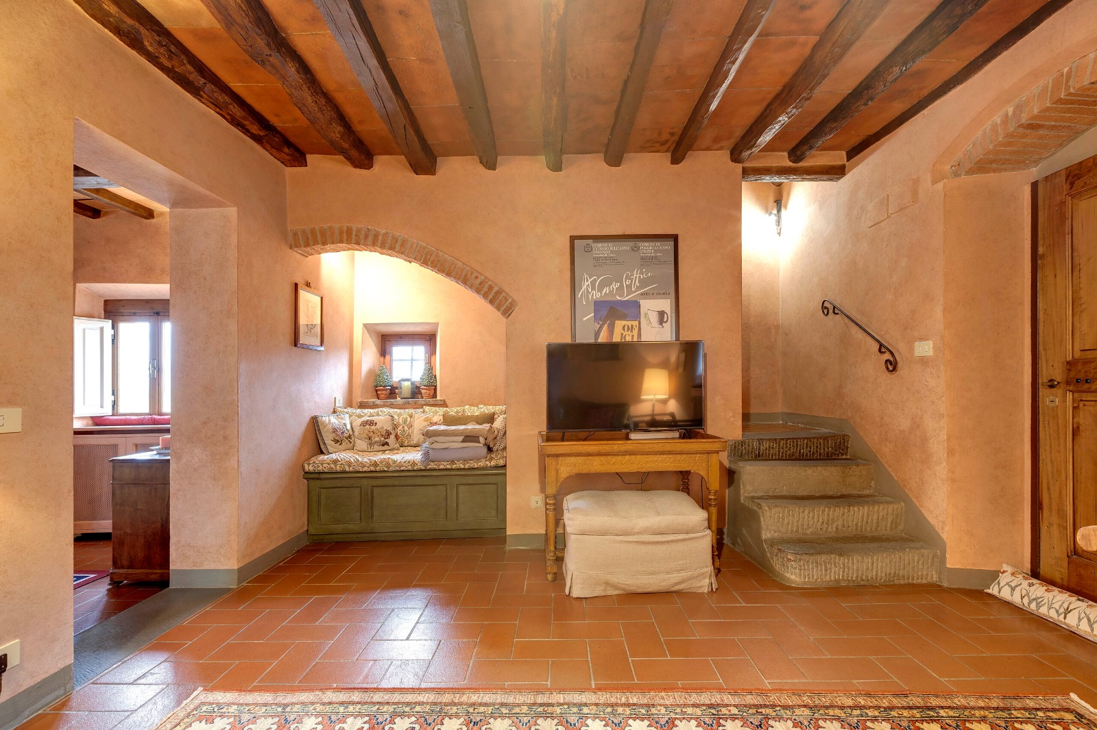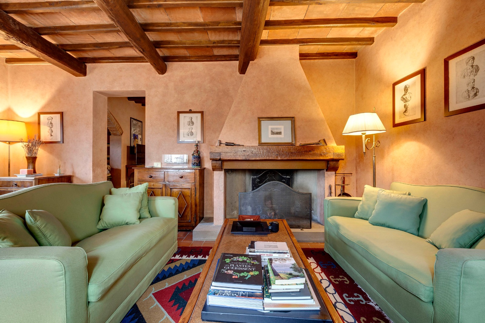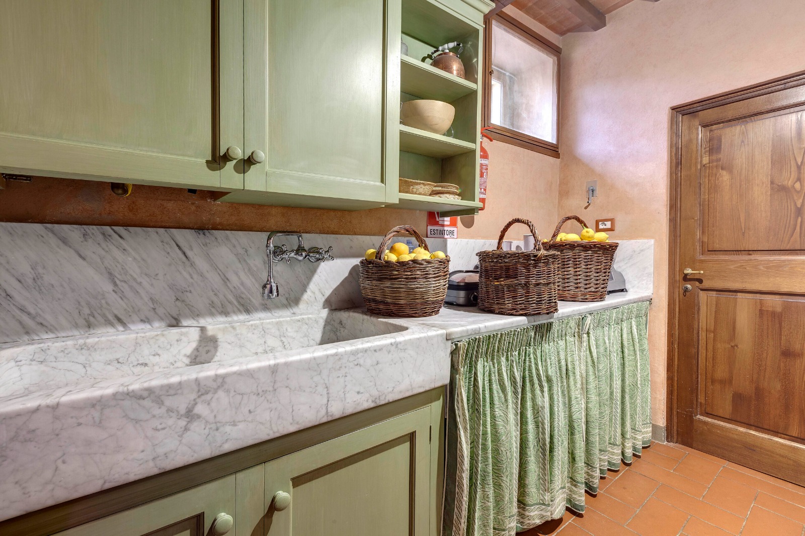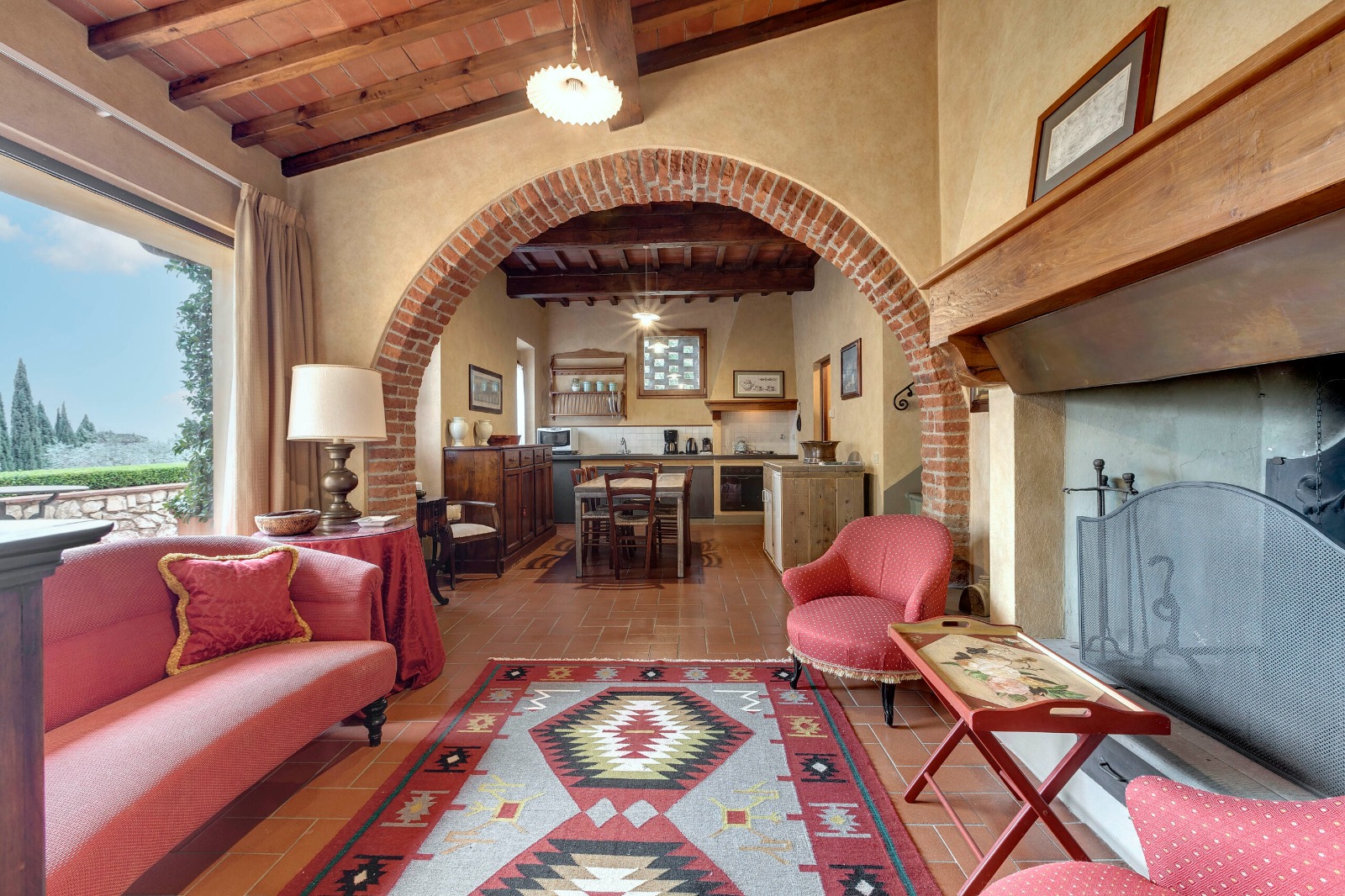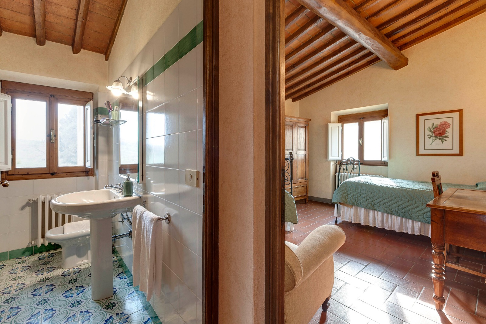 L’intera proprietà si trova in una posizione dominante da dove poter ammirare la splendida vallata e dispone di una piscina 20×9 situata nella parte più riservata dell’immobile. Dispone inoltre di un garage, un deposito attrezzi e di un appartamento per i casieri.