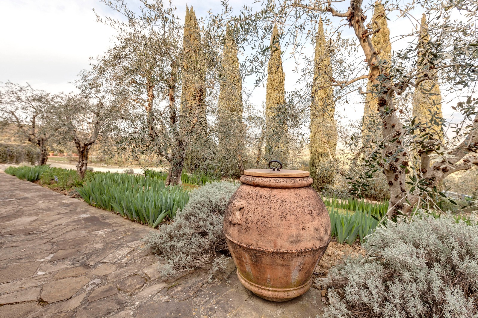 Fanno parte del complesso anche un modernissimo frantoio per la produzione di olio biologico certificato oltre a 40 ettari di terreno suddivisi in 16 ad oliveto con 7000 piante, 1 a frutteto con annaffiatura a goccia, 4 a noci e 19 a boschivo.