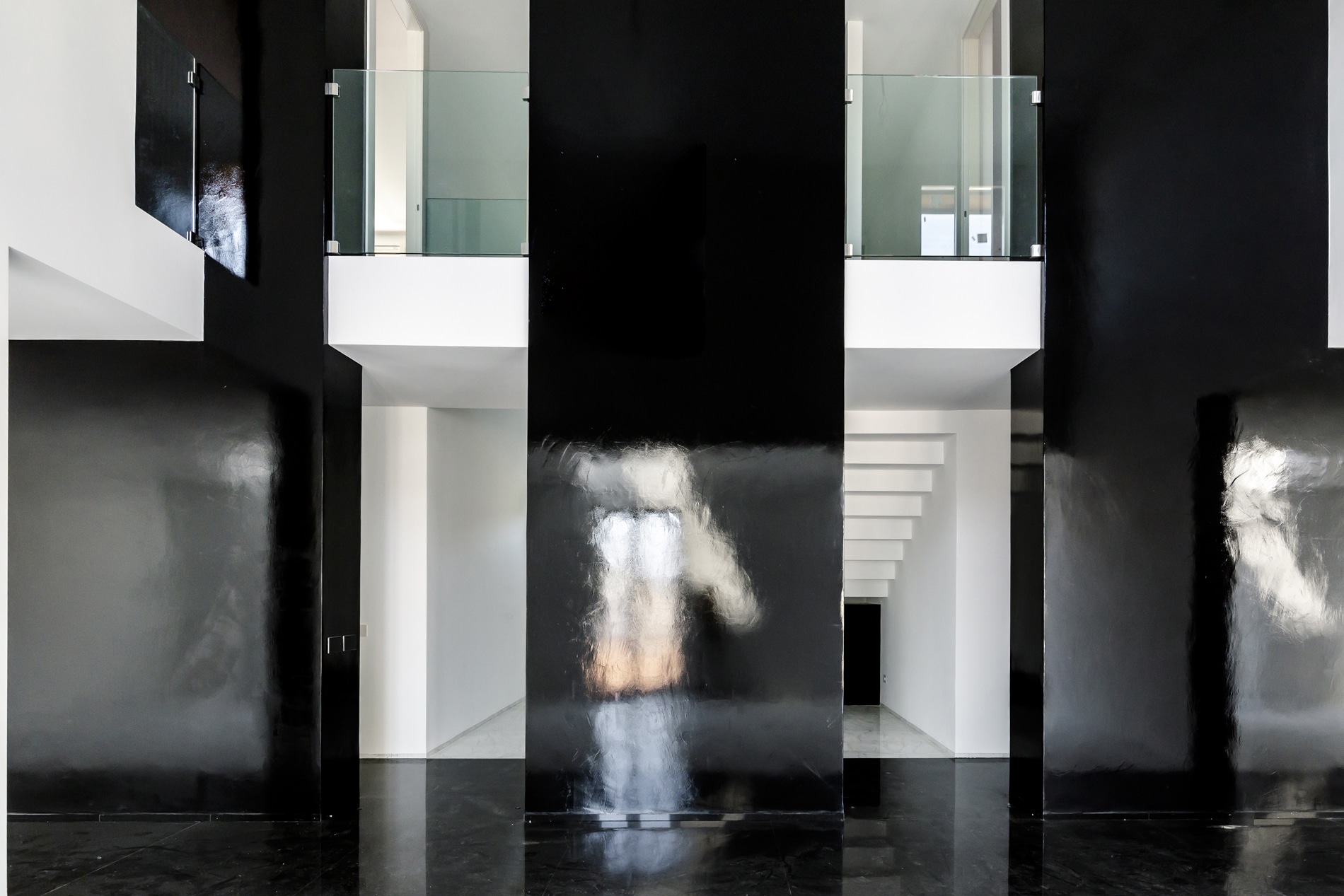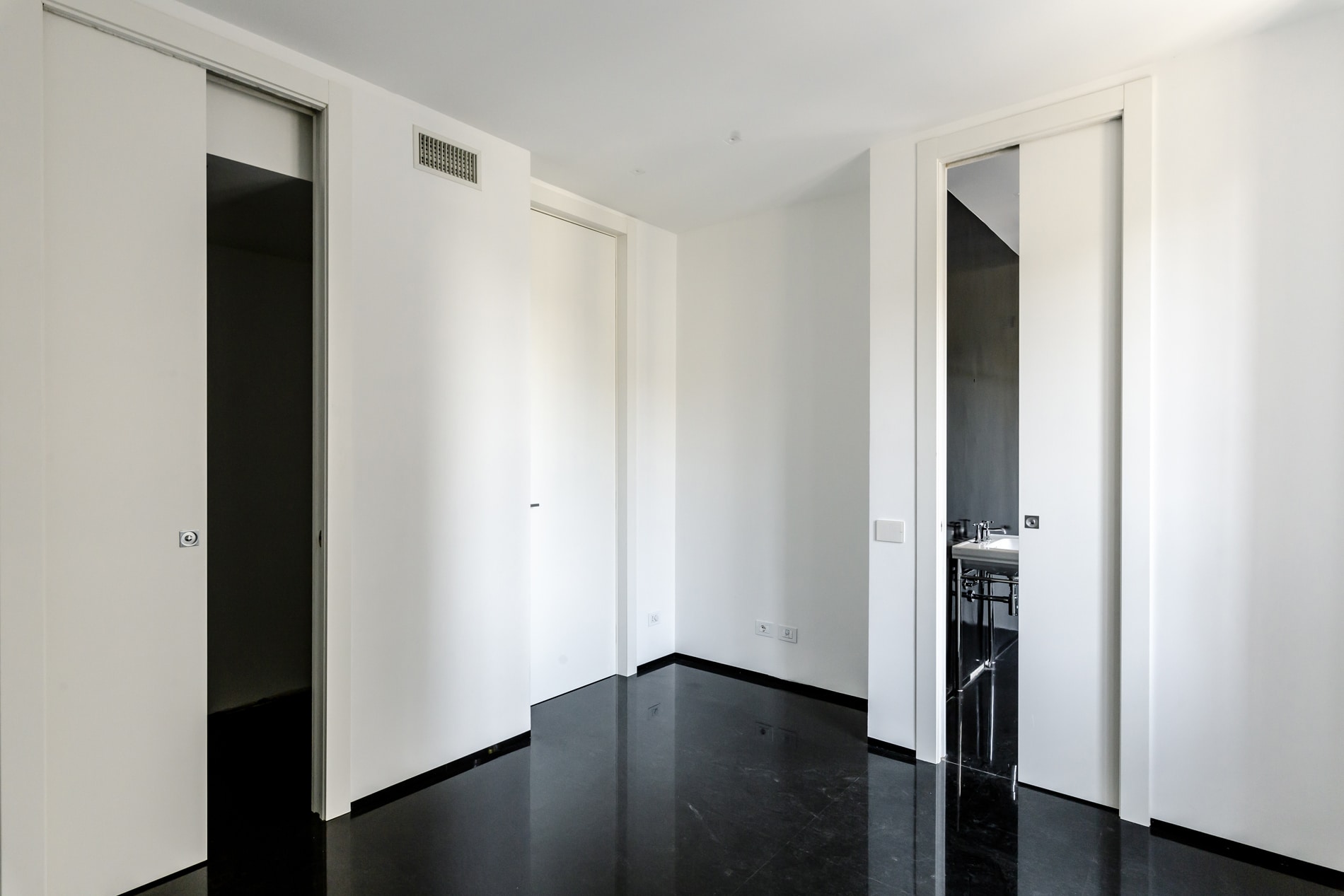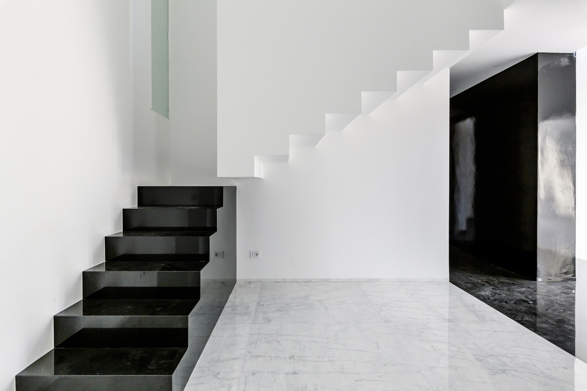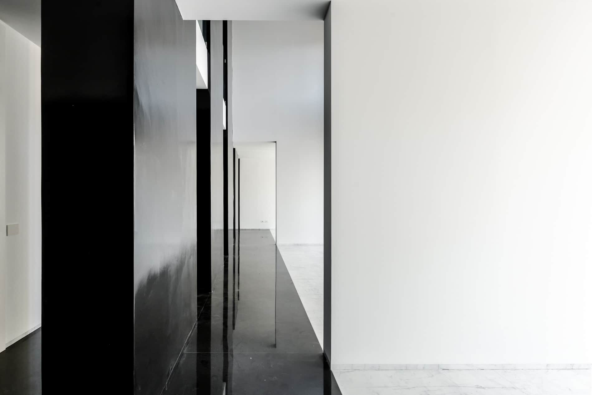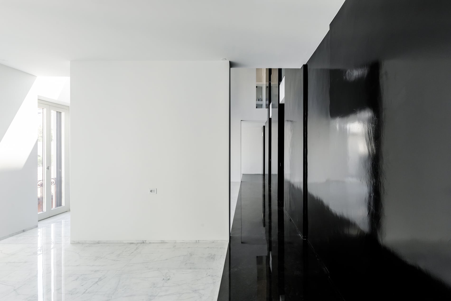 On the floor, an eat-in kitchen as well as the sleeping area consisting of a bedroom with en-suite bathroom and walk-in closet, as well as the service bathroom. An elegant design staircase leads to the upper floor where a balcony overlooking the living room leads on, one side, to the master bedroom with double bathroom and, on the other, to the library/study area. The external areas include the terrace on the fourth floor which leads to the upper terrace-belvedere where it’s possible to create a hanging garden. The apartment has a double exposure to the north-east and south-west.
