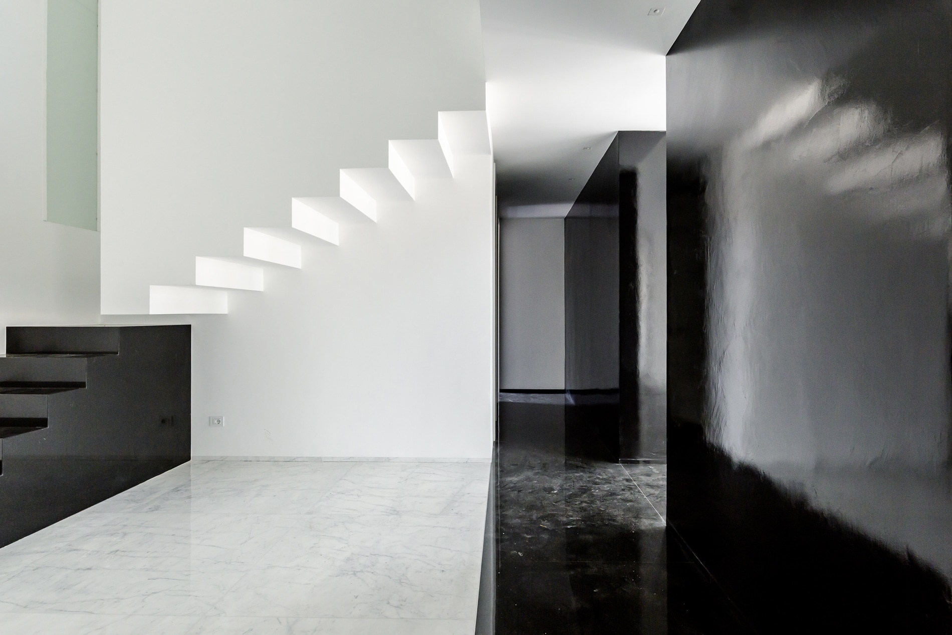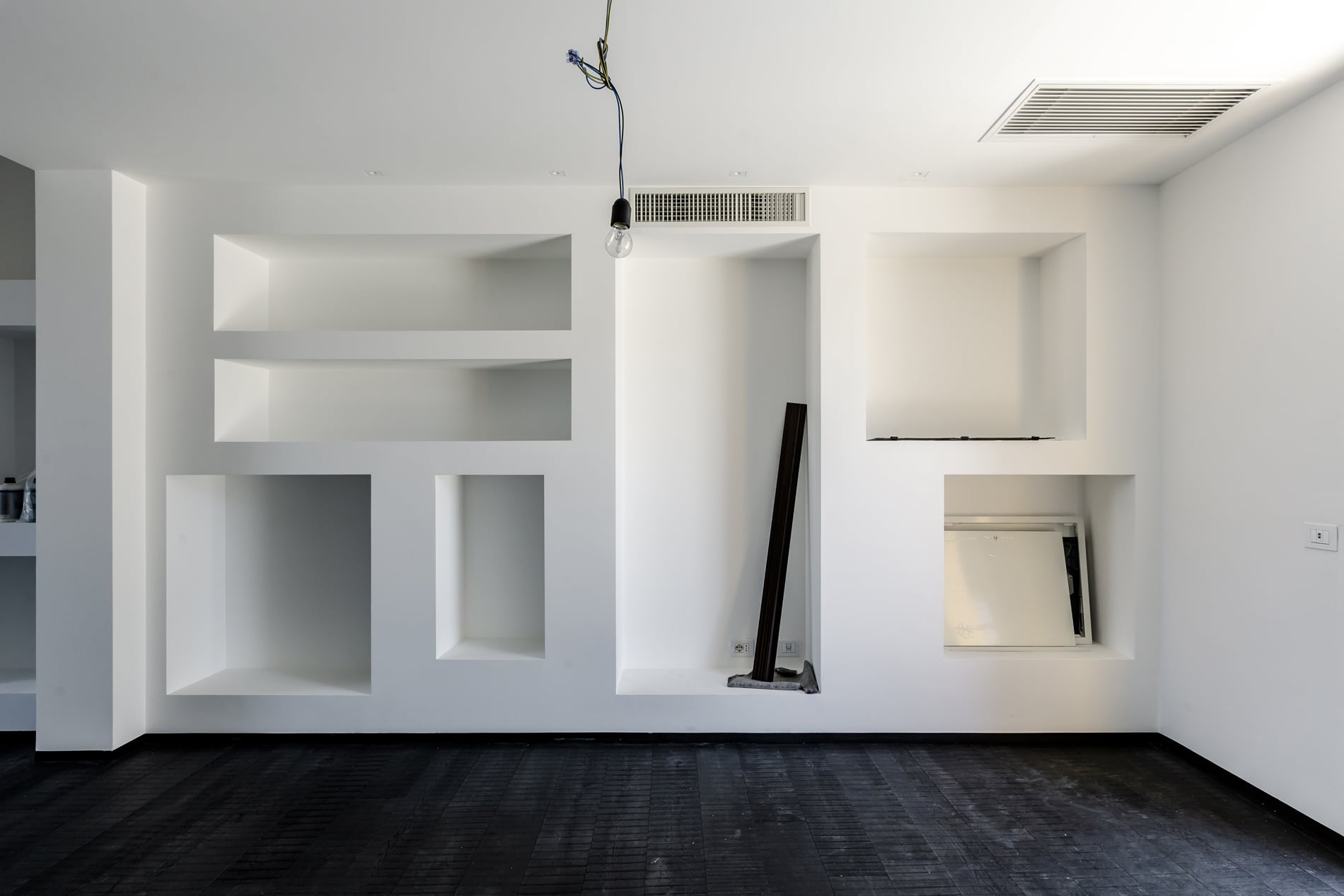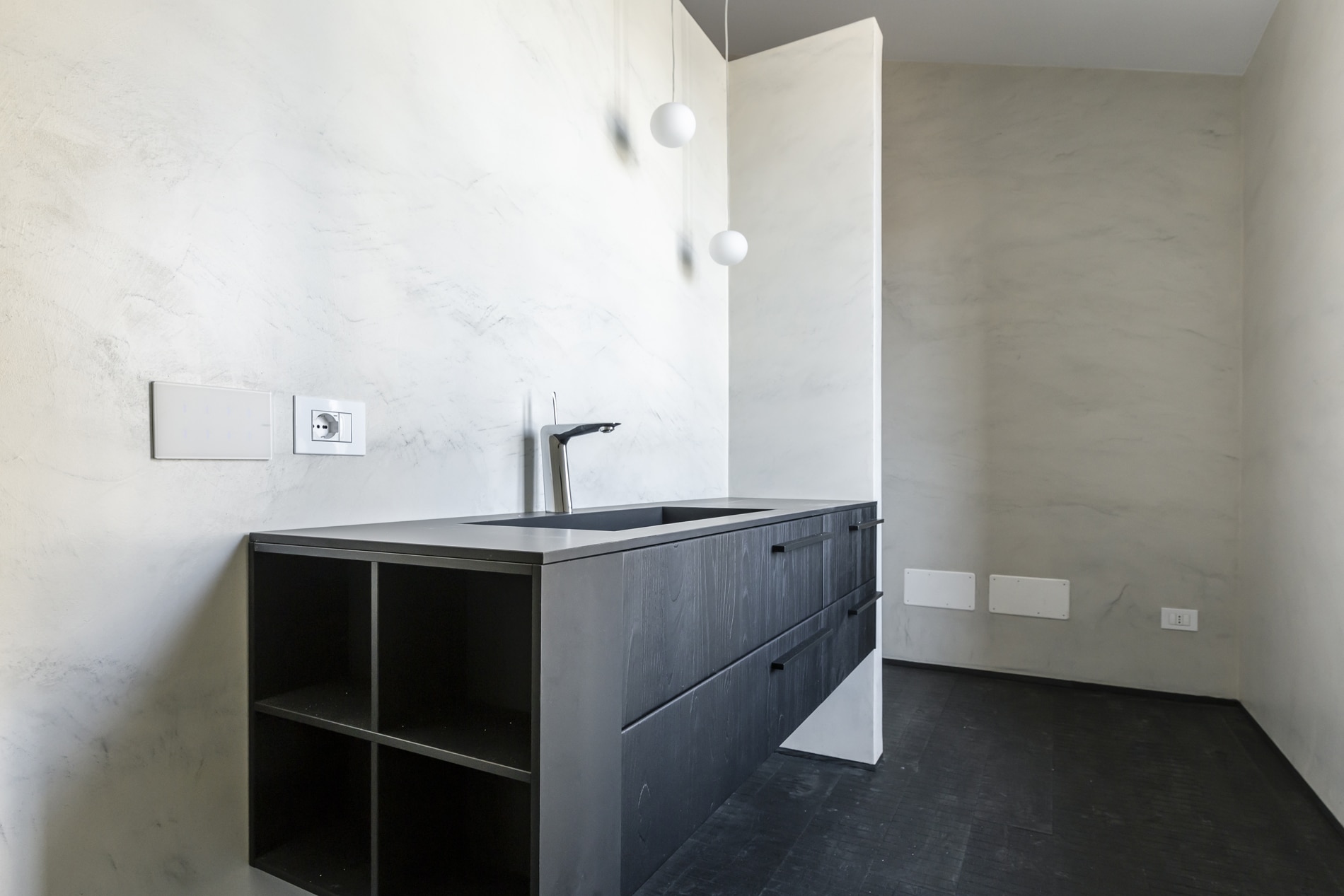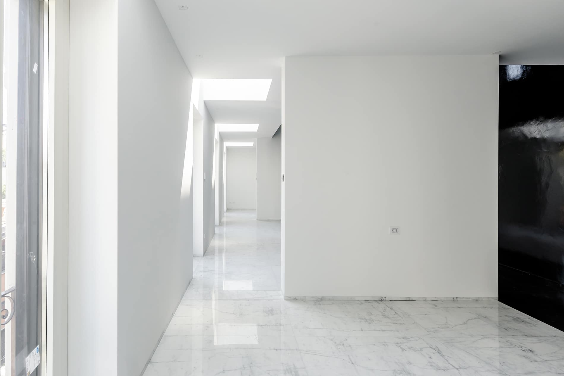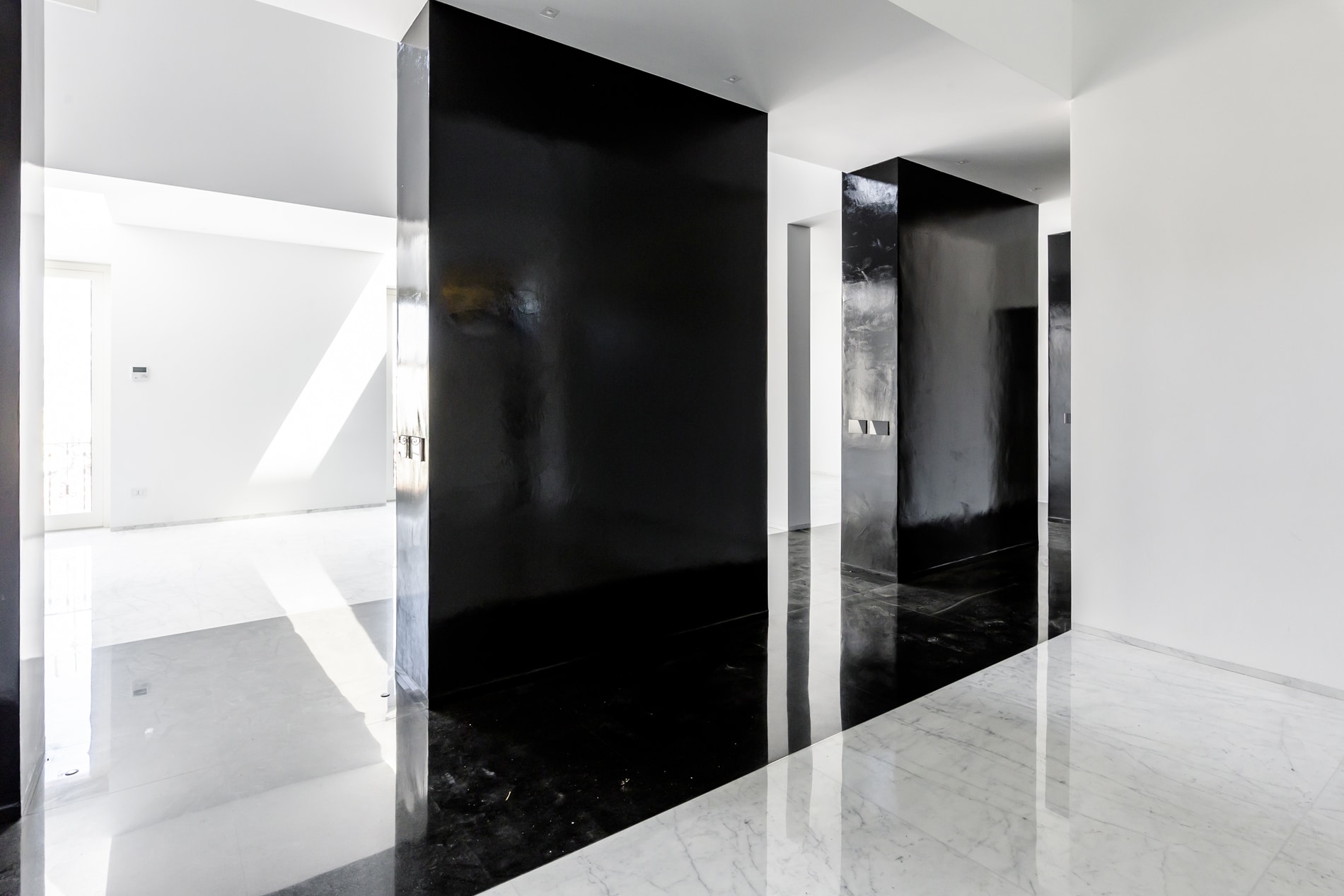 On the floor, an eat-in kitchen as well as the sleeping area consisting of a bedroom with en-suite bathroom and walk-in closet, as well as the service bathroom. An elegant design staircase leads to the upper floor where a balcony overlooking the living room leads on, one side, to the master bedroom with double bathroom and, on the other, to the library/study area. The external areas include the terrace on the fourth floor which leads to the upper terrace-belvedere where it’s possible to create a hanging garden. The apartment has a double exposure to the north-east and south-west.
