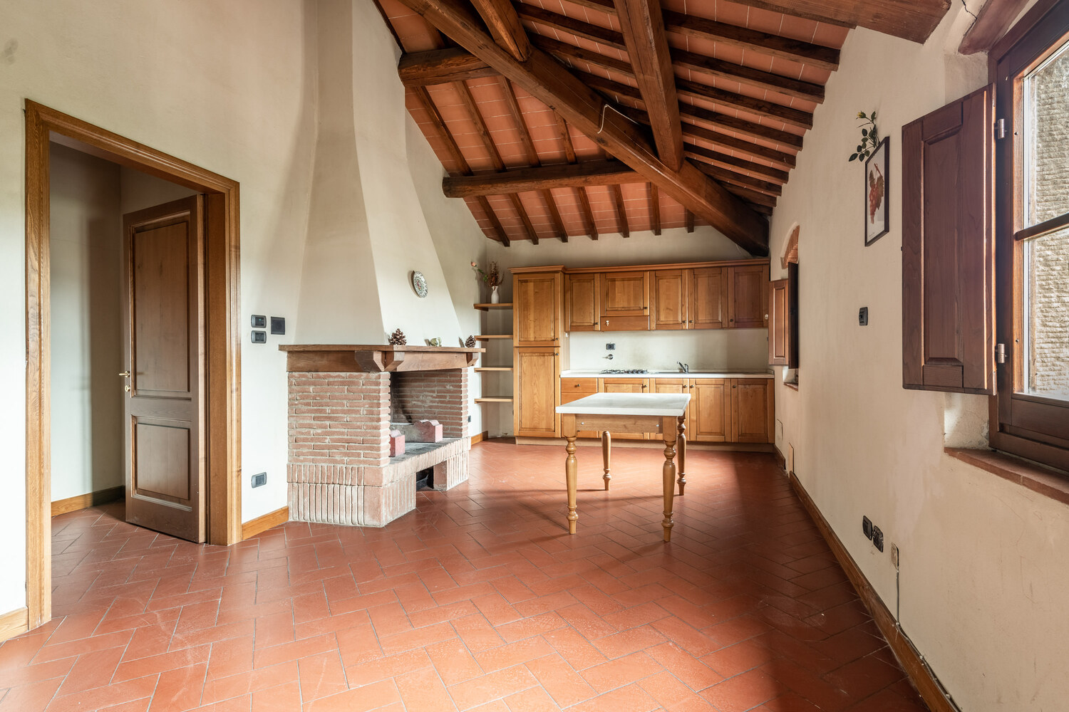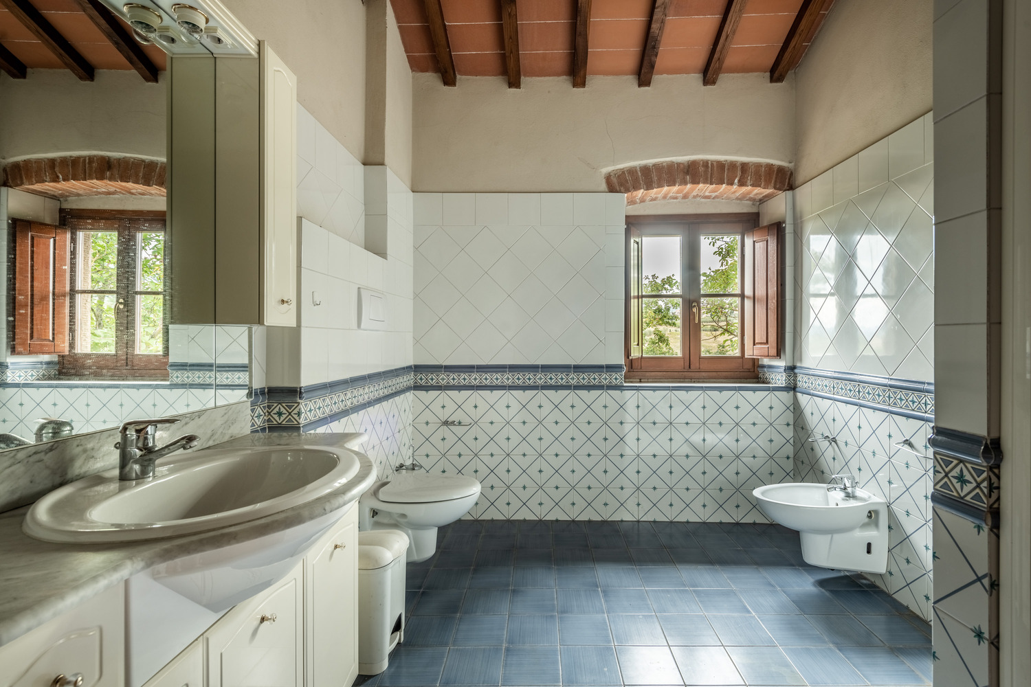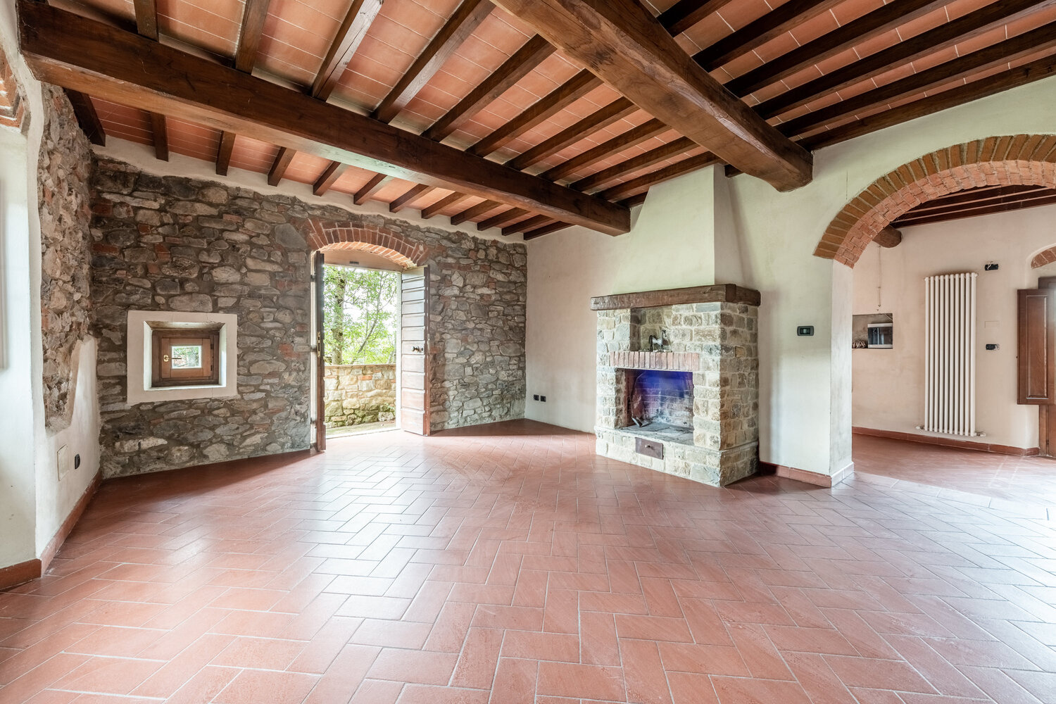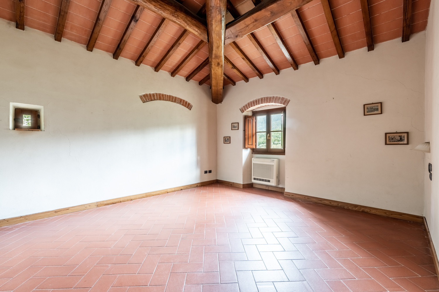 L’abitazione si completa con un loggiato, un ampio piazzale in pietra ed un bellissimo giardino. La casa colonica è stata completamente ristrutturata e sono state create cinque unità abitative: tre situate al piano terra con una, due e tre camere, relativi soggiorni, cucine e bagni ed infine due unità abitative al primo piano, con due e tre camere, due bagni ciascuna e relative cucine e soggiorni.